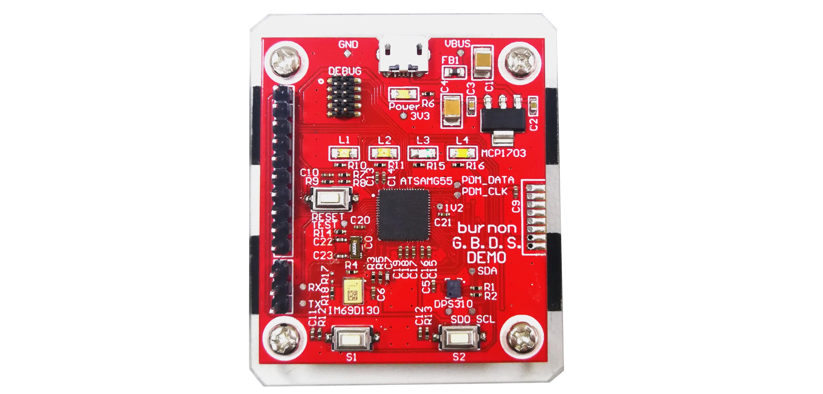 該方案主控芯片基于Microchip公司的ATSAMG55J19B-MUT,該MCU為ARM Cortex-M4內(nèi)核,帶176 Kbytes SRAM和120 MHz主頻,有Memory Protection Unit (MPU)及DSP指令,最重要是帶適合于采集聲音、氣壓數(shù)據(jù)處理的浮點單元(FPU)和PDM接口……