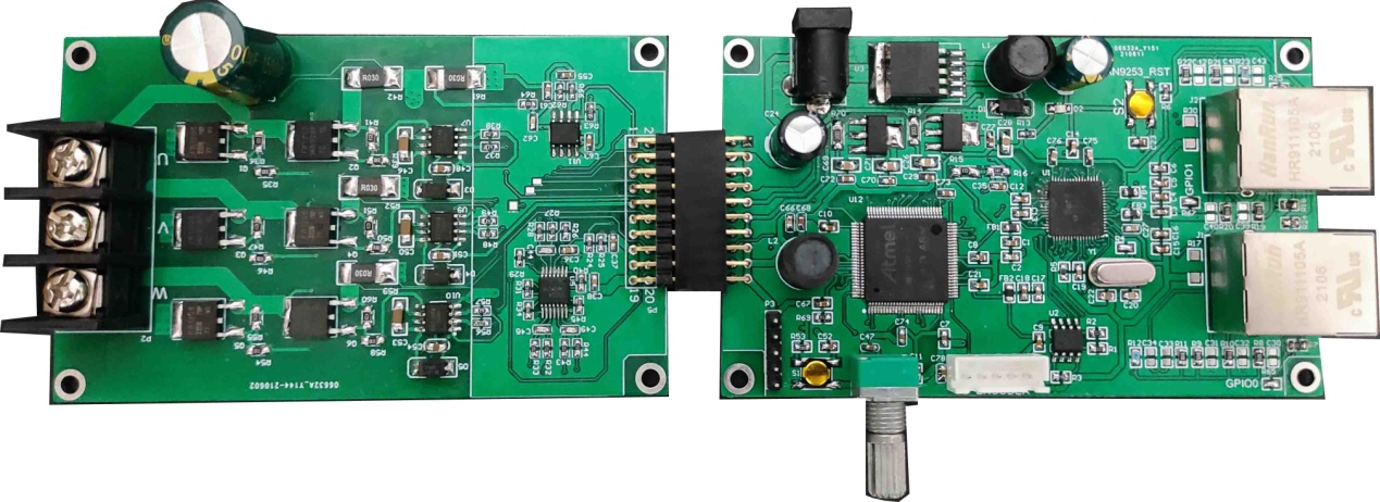 本應用方案是一套以Microchip的LAN9253為從站節點的驅動板,板載一片ATSAMD51N19主控芯片,LAN9253為從站芯片,主站電腦配置工業以太網卡,通過以太網線連接從站,Twincat掃描出從站IO節點,通過IO節點控制電機啟停,轉動角度,轉速控制等。
