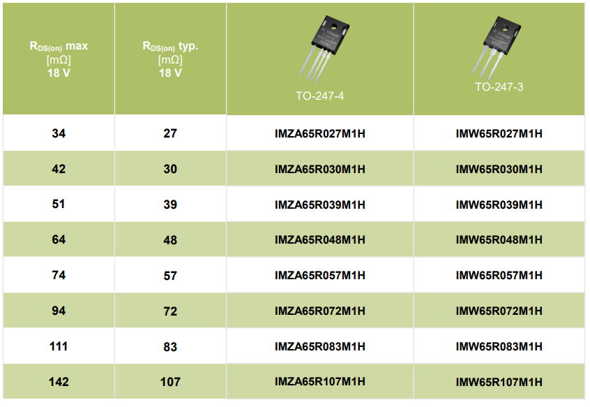 對于效率要求高的產品,可以使用全碳化硅的高壓CoolSiC解決方案,下面是英飛凌碳化硅MOS的產品。