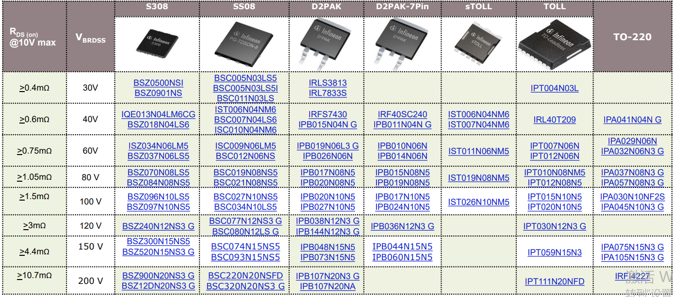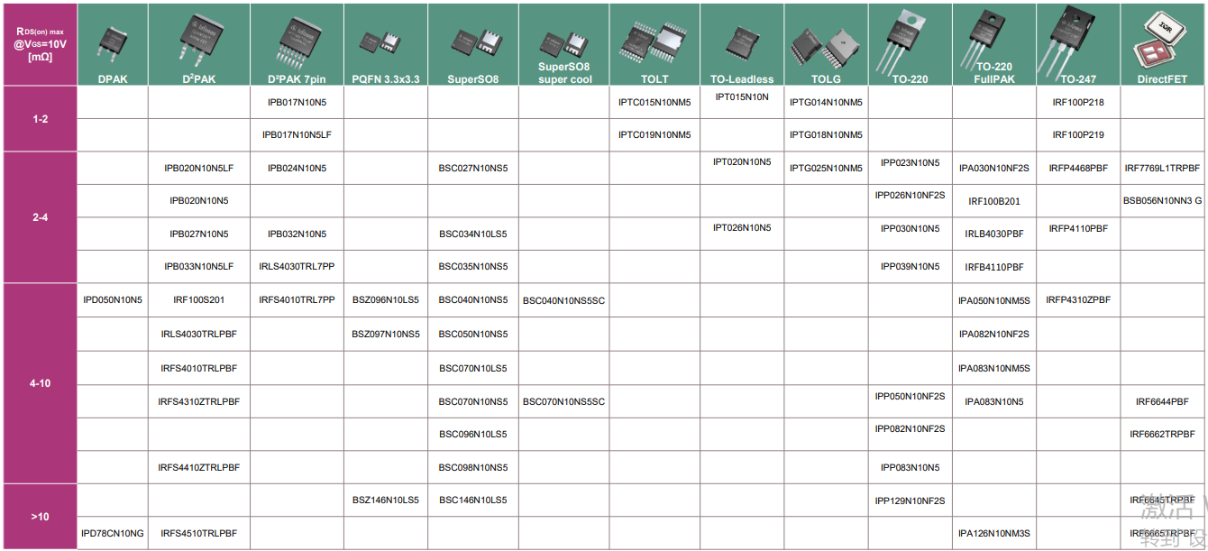 下面是DC-DC的Buck-Boost/Buck Converter 推薦的英飛凌的低壓MOSFET的產品系列: