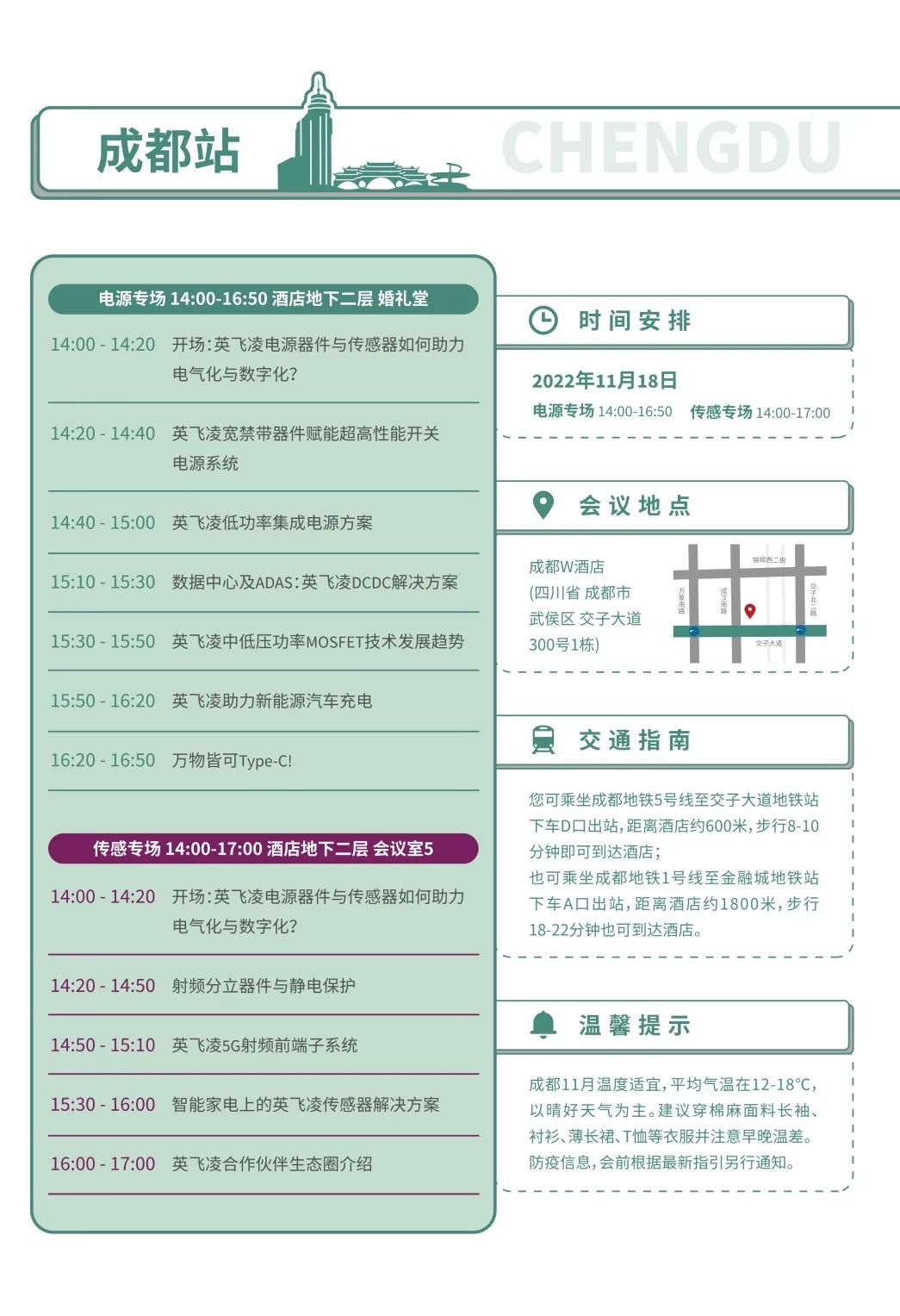 每場研討會均設有電源專場與傳感專場,并開設樣品互動展示區。