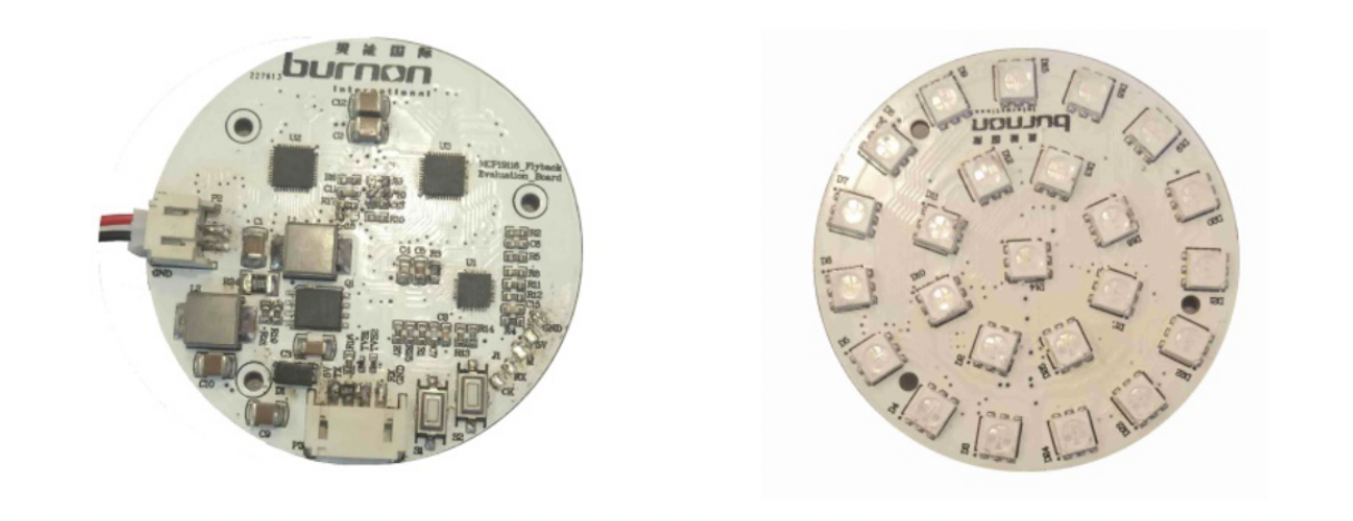 本方案采用SEPIC拓撲結構,恒壓輸出,可以實現升降壓;單芯片實現電源管理,通過I2C通訊控制RGB,實現顏色及單顆燈珠控制。